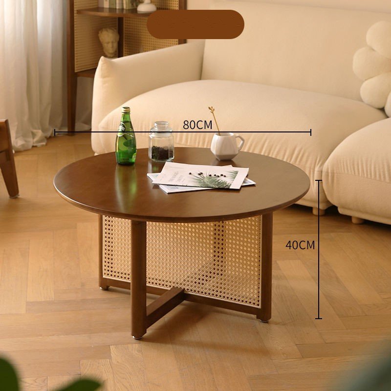 Bàn trà tròn với thiết kế hiện đại kết hợp cùng vân gỗ tự nhiên.