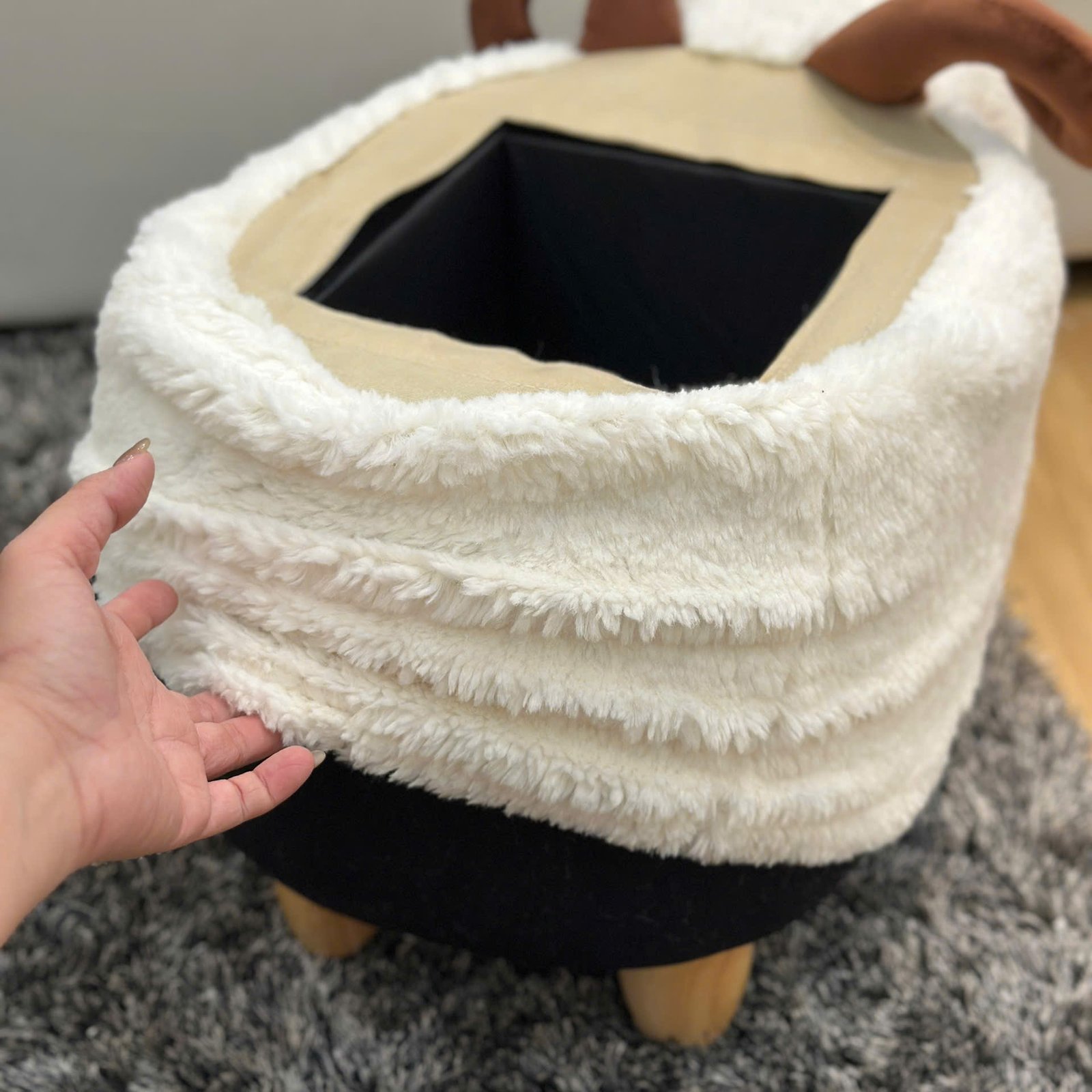 • Đôn cừu thiết kế độc đáo, đáng yêu, tạo điểm nhấn cho không gian.