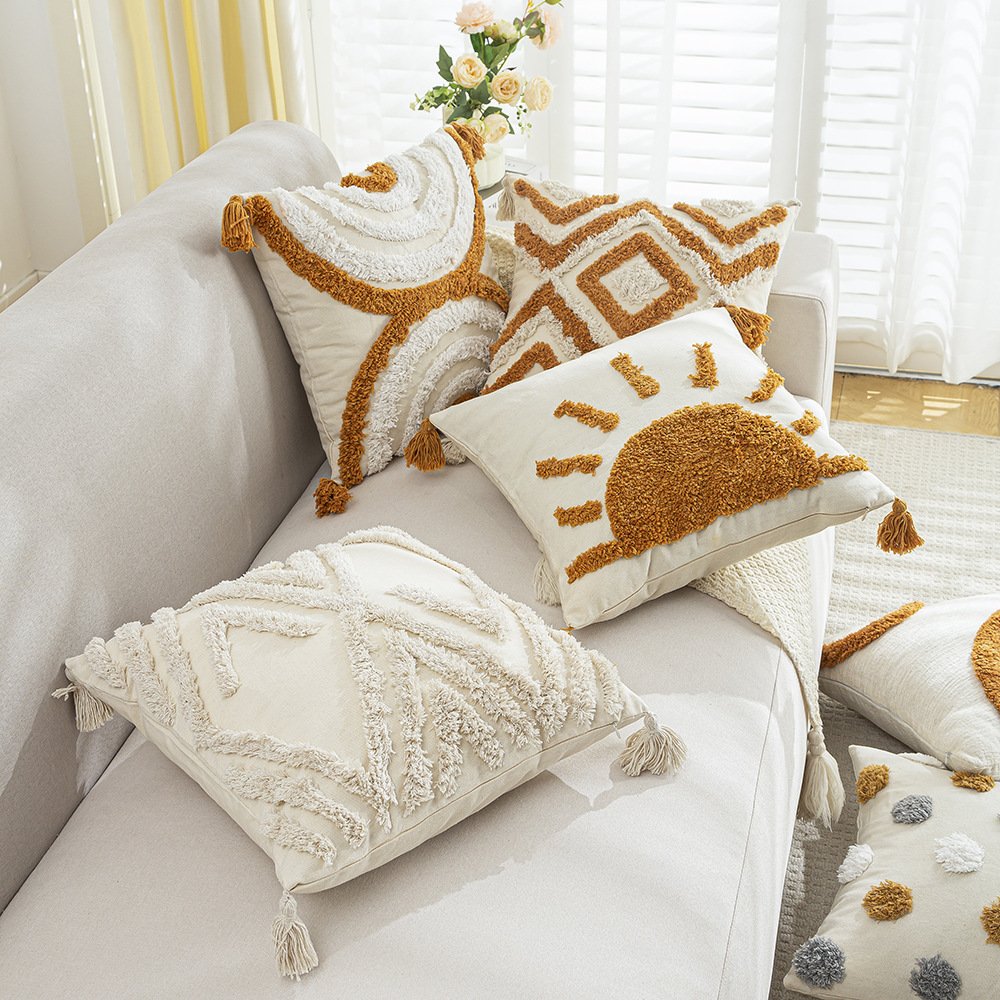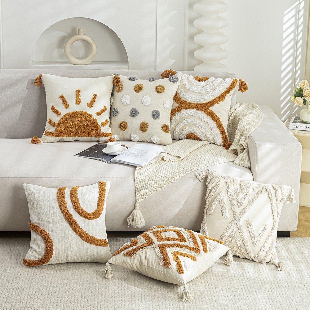 Mô tả▪️Gối decor vuông nền kem với họa tiết sợi nổi màu cam đất tạo điểm nhấn nổi bật cho sofa hoặc giường ngủ.