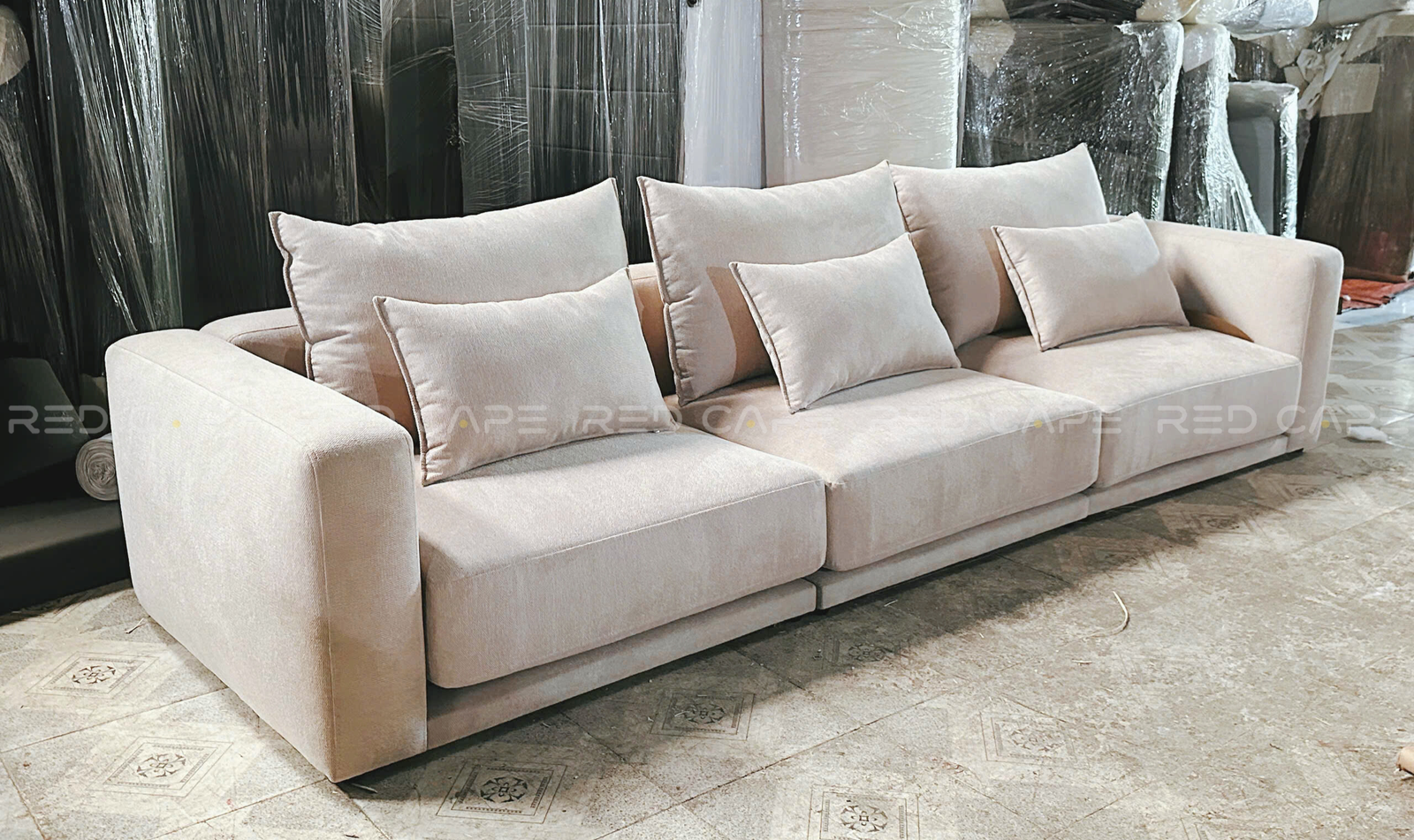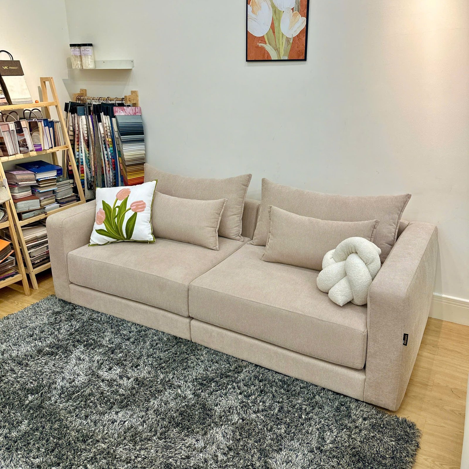 | Mô tả | ▪️ Chiếc sofa mang phong cách Contemporary với những đường nét vuông vức tinh gọn, kết hợp cùng gam màu be trang nhã tạo nên sự thanh lịch và hiện đại. ▪️ Nhiều gối tựa đồng bộ không chỉ gia tăng sự thoải mái mà còn mang đến sự cân đối, hài hòa cho thiết kế. Lựa chọn lý tưởng cho phòng khách tối giản nhưng vẫn giữ nét sang trọng. |