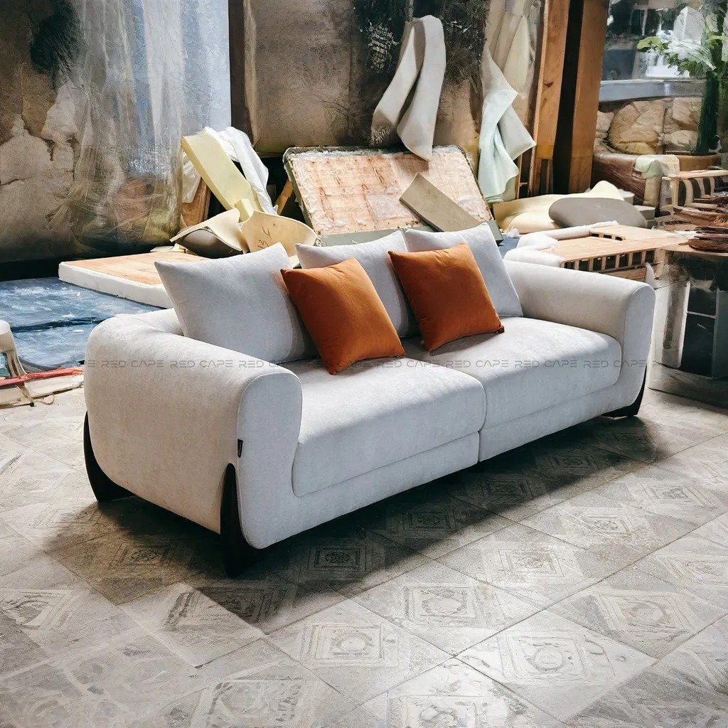 | Mô tả | ▪️Chiếc sofa mang phong cách hiện đại với đường cong mềm mại nơi tay vịn và phần chân gỗ tinh tế. ▪️Gam màu kem sáng thanh lịch dễ phối hợp trong nhiều không gian nội thất, từ căn hộ tối giản đến biệt thự sang trọng. ▪️Bộ gối nhấn màu cam rực rỡ tạo điểm nhấn trẻ trung và cá tính, giúp không gian thêm phần sống động. |