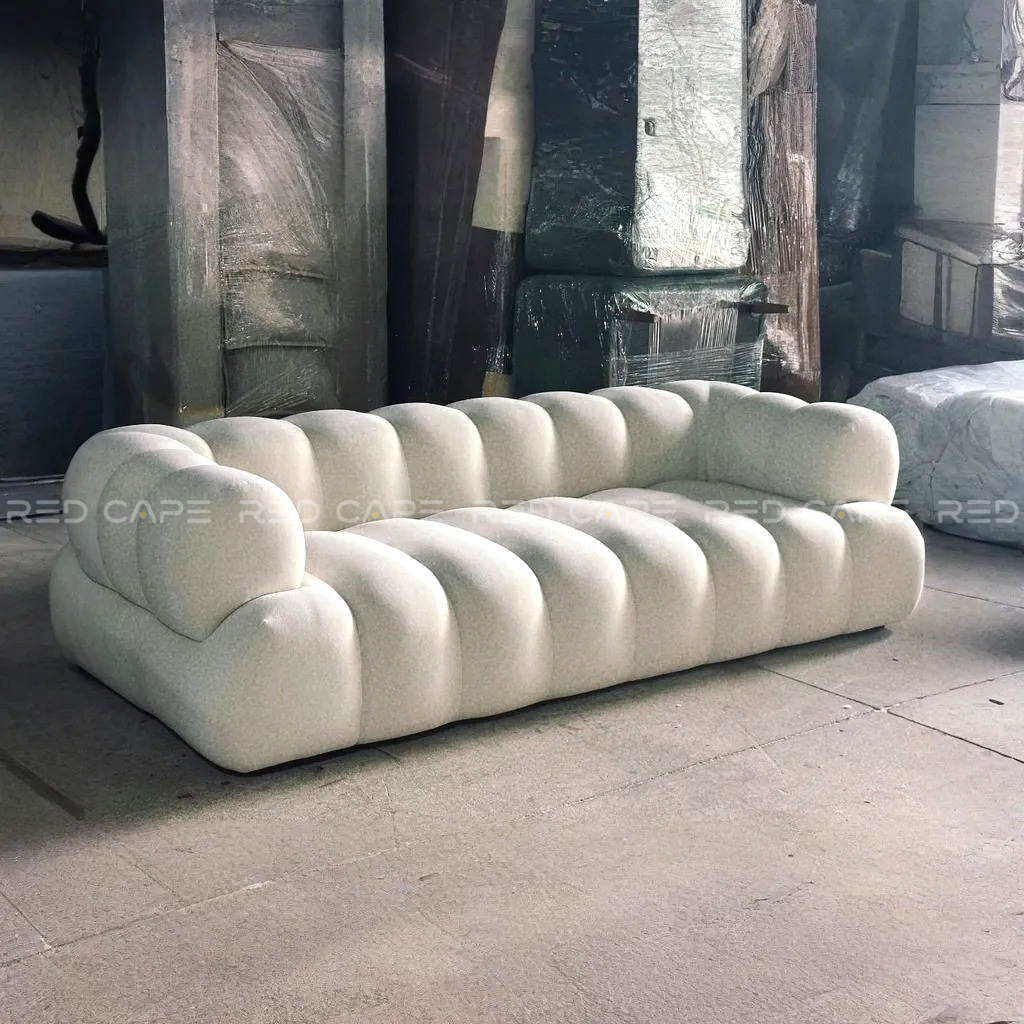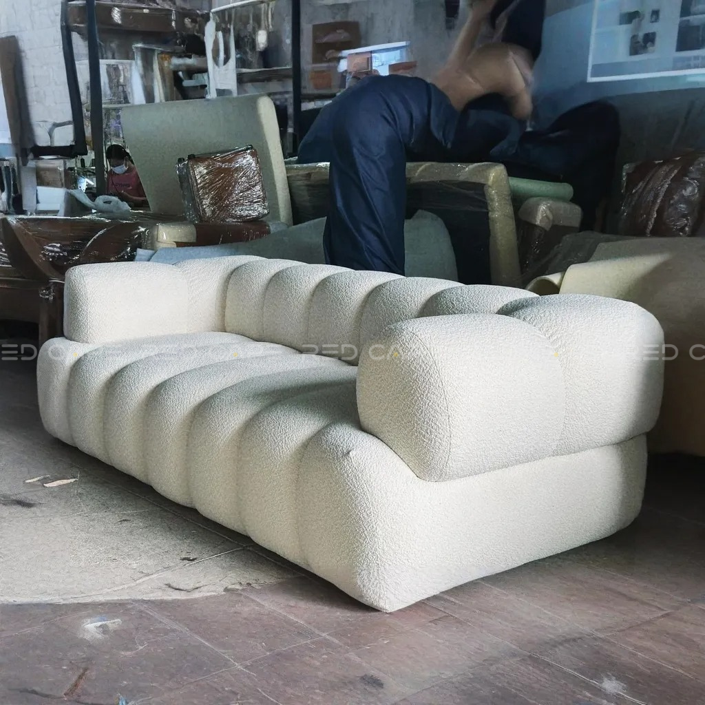 • Sofa bouclé dáng thấp với thiết kế múi phồng độc đáo