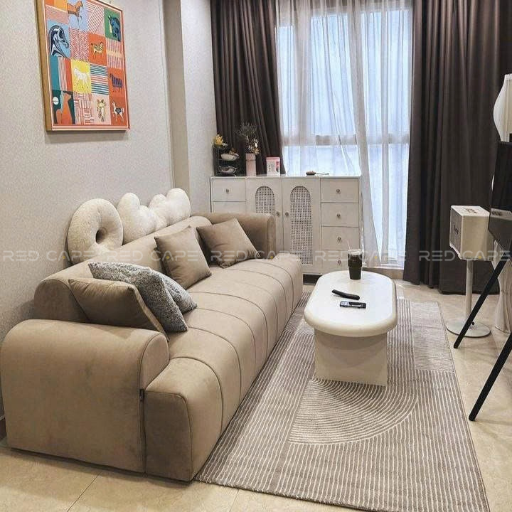 ▪️ Chất liệu bọc vải cao cấp, form dáng vuông vức nhưng mềm mại, mang lại sự cân bằng giữa thẩm mỹ và công năng.