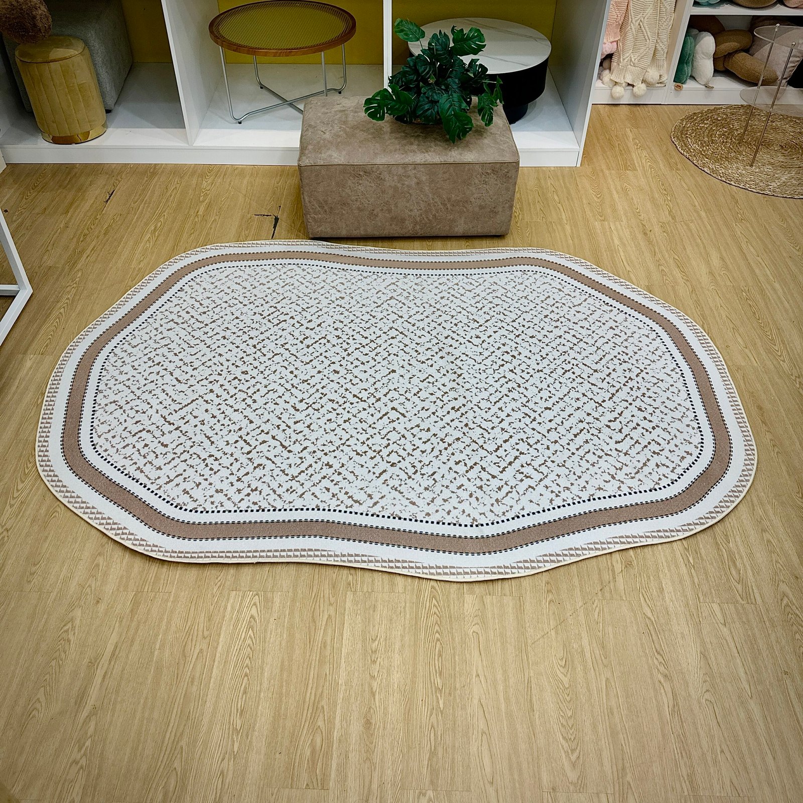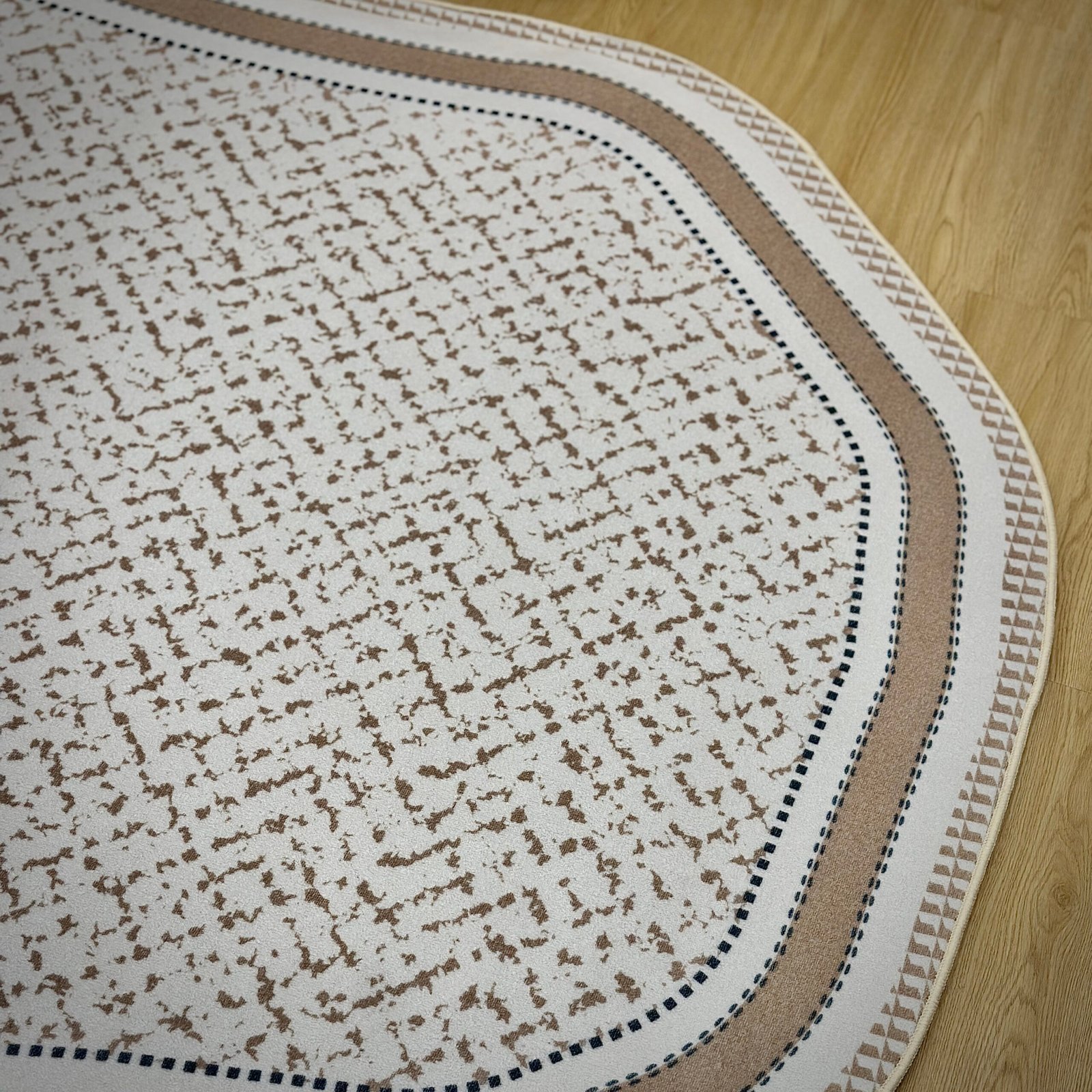| Mô tả | ▪️Chiếc thảm trải sàn với viền đen sang trọng và hoa văn tinh xảo mang đến sự cân bằng giữa hiện đại và cổ điển. ▪️Tông màu be trung tính kết hợp đường nét cá tính giúp không gian thêm đẳng cấp, trang nhã nhưng vẫn gần gũi và ấm áp. ▪️ Bề mặt chống thấm nước, hạn chế bụi bẩn giúp việc vệ sinh trở nên dễ dàng hơn bao giờ hết. |
