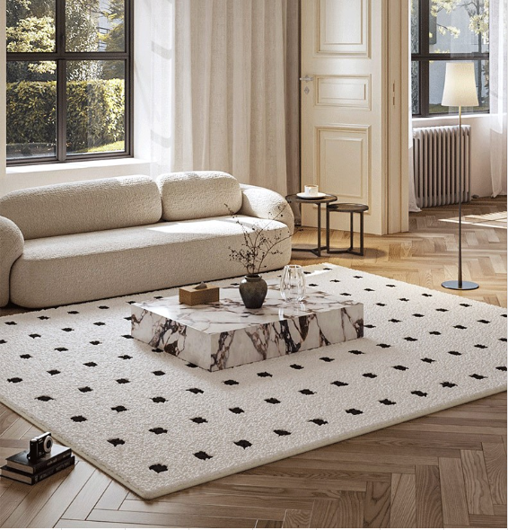 | Mô tả | ▪️ Với nền trắng kem tinh khôi kết hợp họa tiết chấm đen tối giản, tấm thảm mang đến sự cân bằng hoàn hảo giữa tính nghệ thuật và công năng sử dụng. ▪️Thiết kế hiện đại, sang trọng, dễ dàng kết hợp cùng sofa, bàn trà hay nội thất gỗ, tạo nên không gian sống thanh lịch và đẳng cấp. |